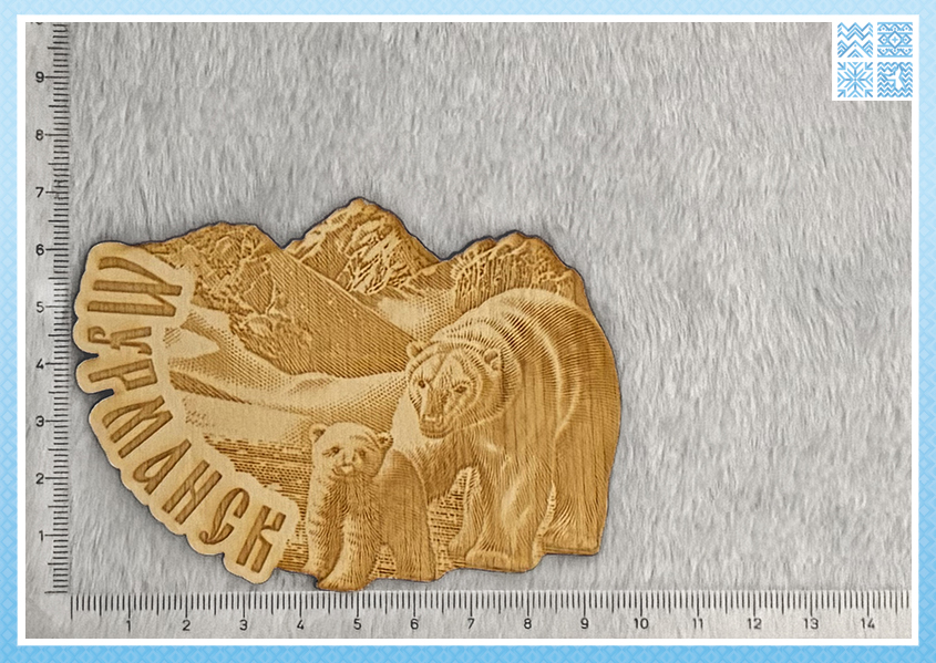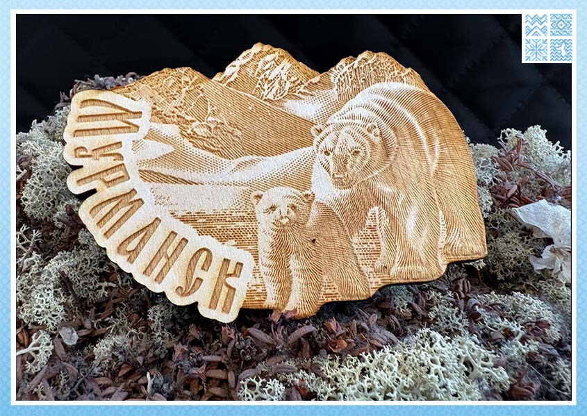 Этот магнит ломает стереотипы о сувенирах. Это не просто табличка с рисунком — это цельная деревянная скульптура для вашего холодильника, вобравшая в себя дух мурманской земли. Его хочется не только рассматривать, но и трогать, ощущая прохладу дерева и чёткий контур фигур.