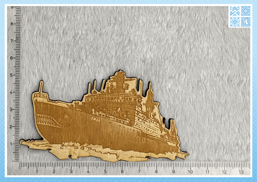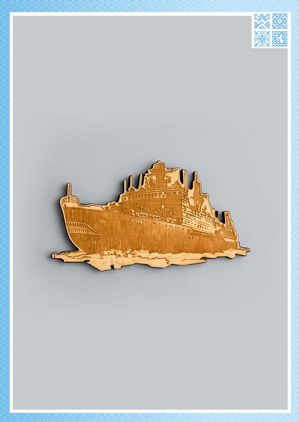 Встречайте одного из самых узнаваемых атомоходов мира — ледокол «Ямал»! Этот магнит — точная деревянная копия легендарного судна, известного не только своей мощью, но и знаменитой «акульей улыбкой» на носу. Силуэт атомного богатыря, покоряющего льды, теперь может украсить ваш дом.