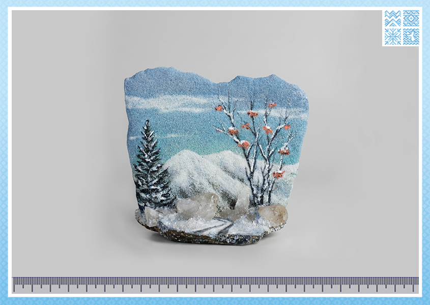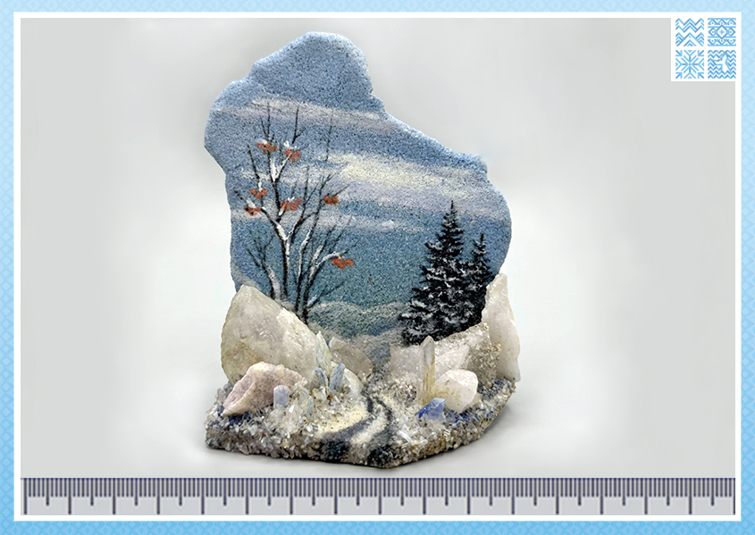 «Монументальная зима в миниатюре». Плотная композиция ручной работы из редких камней. Есть разные композиции в похожей тематике. Все они уникальны.